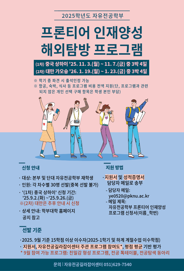 | 2025학년도 자유전공학부 프론티어 인재 양성 해외탐방 프로그램(1차) 신청 안내 | |||