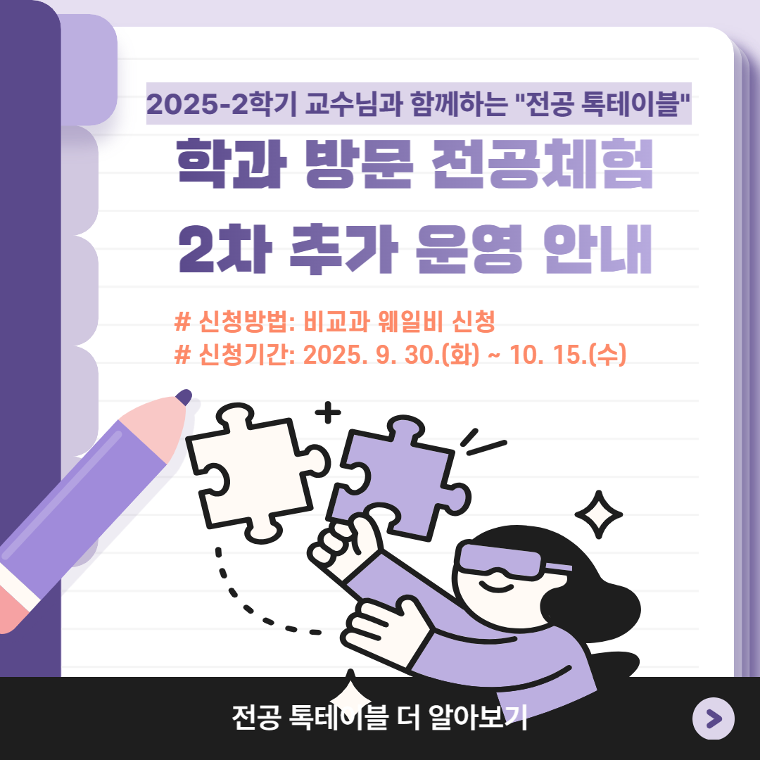 2025-2학기 교수님과 함께하는 전공 톡테이블 2차 추가 운영 안내(학과 방문 전공체험)