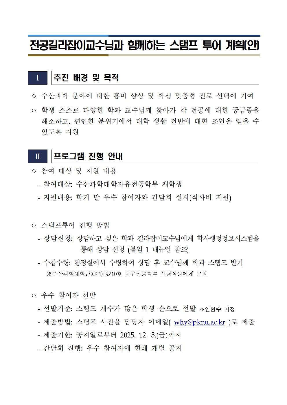 전공길라잡이교수님과 함께하는 스탬프투어 진행 안내