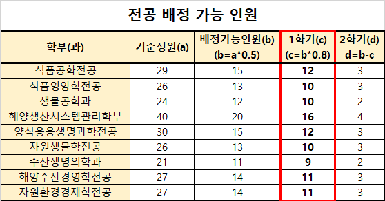 나. 전공배정 주요내용 1) 배정자격 - 최소이수학점* 이수자 * 상대평가가 적용된 본교 교양 교과목 14학점 이상 포함 총 27학점 이상 2) 2026-1학기 배정가능인원 및 배정방법 - (2유형단과대학 자유전공학부) 총 배정가능인원(전공별 기준정원의 50%)의 80%까지 배정하고, 제1지망 전공부터 순차적으로 배정하되, 순위별 전공의 지원인원이 배정가능인원을 초과하는 경우는 배정우선순위에 따라 전공에 배정