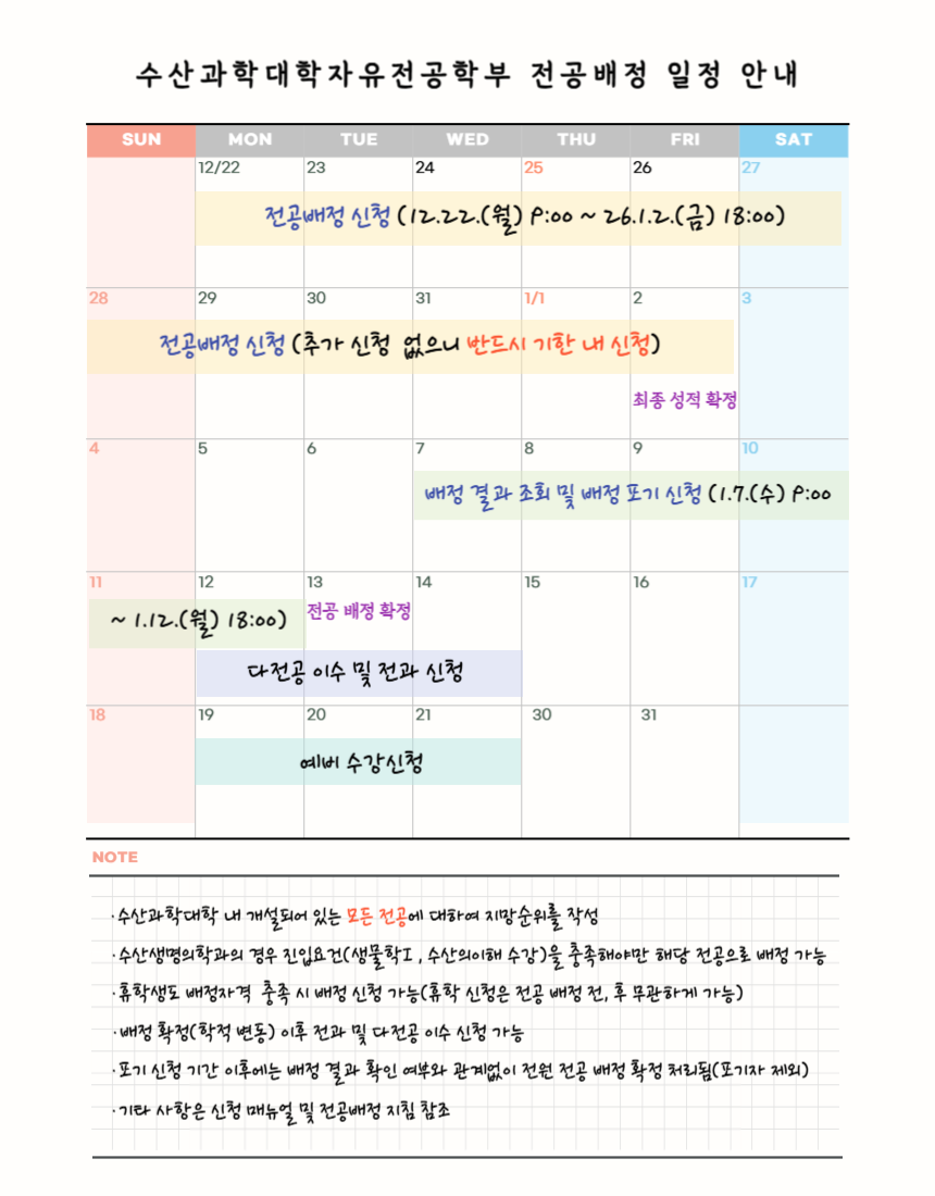 | 2026년 1월 자유전공학부 전공배정 실시 안내 | |||